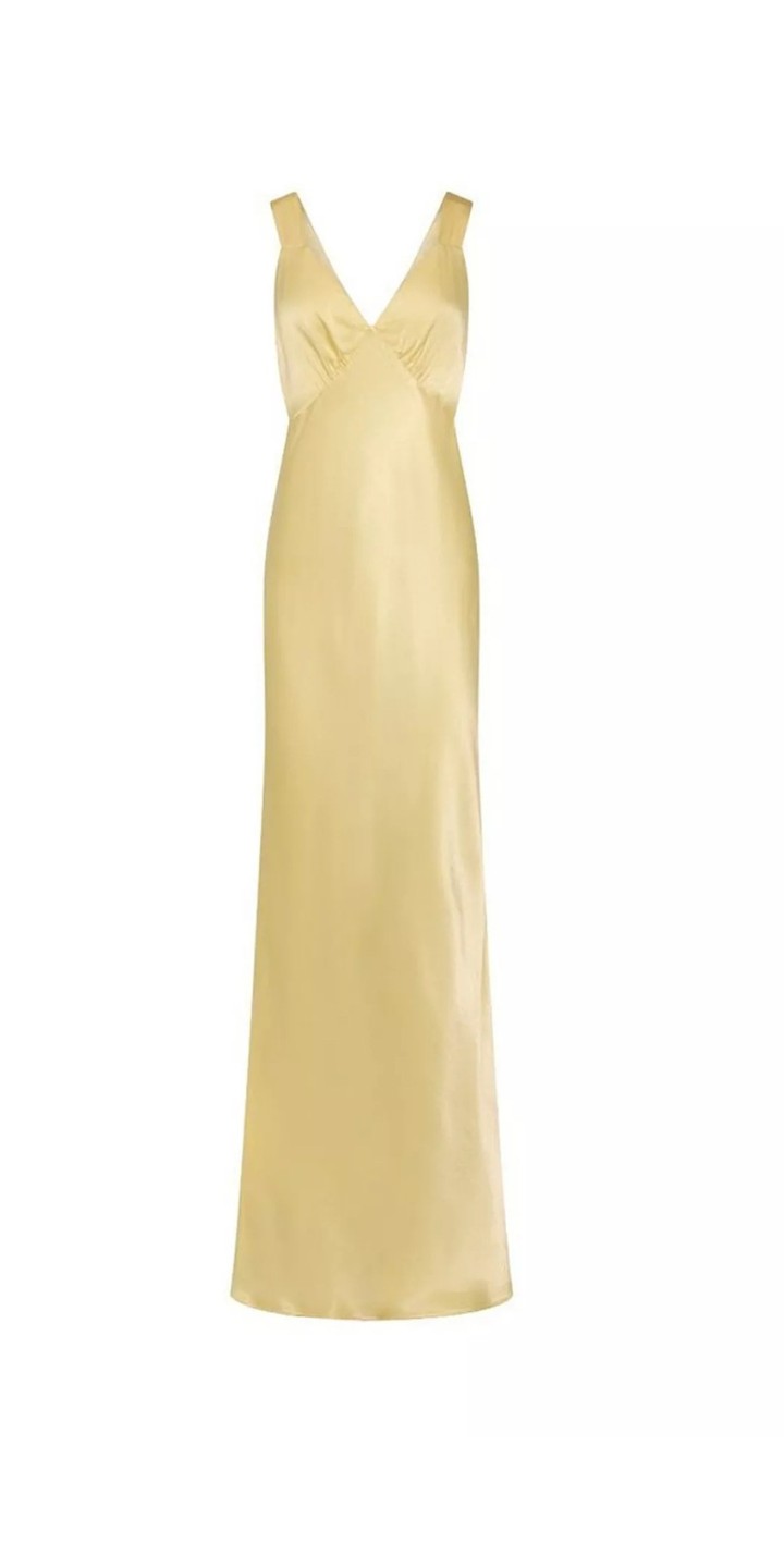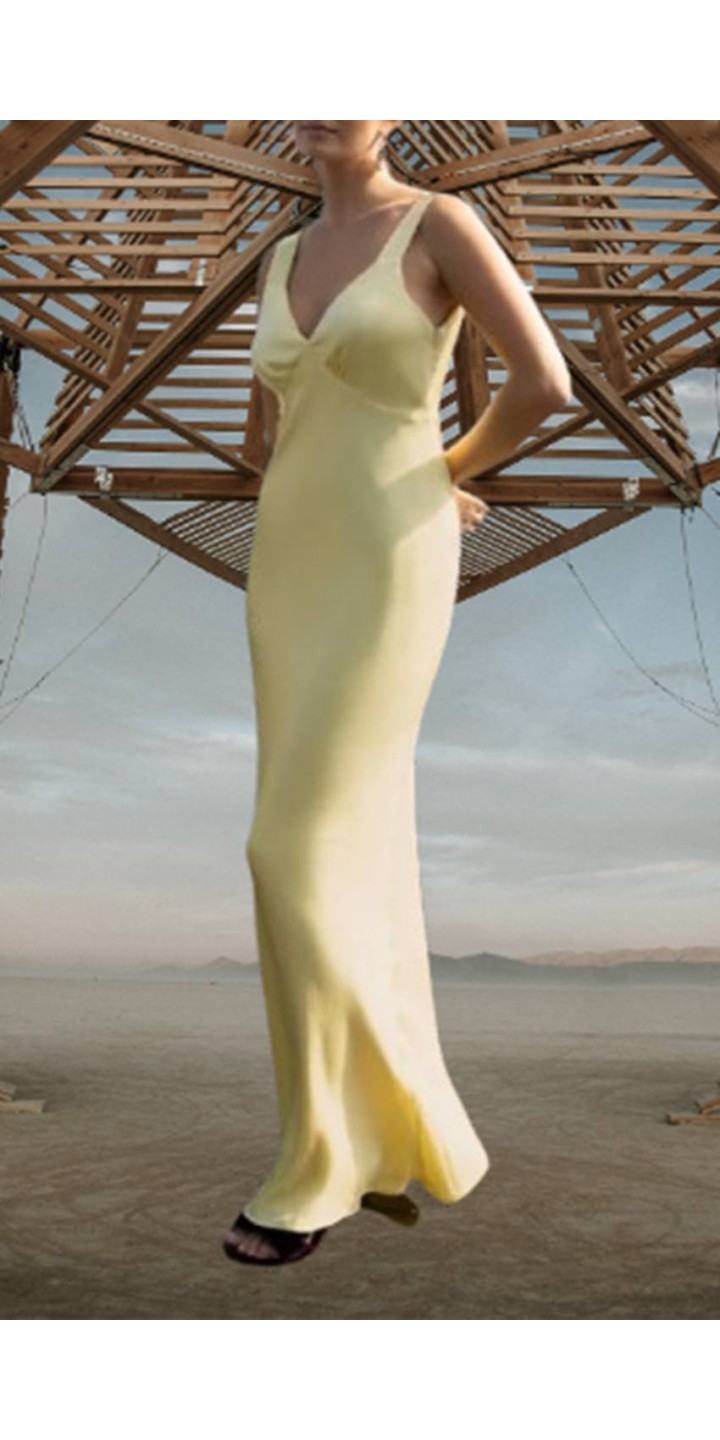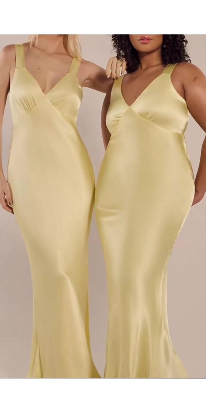 Dress your bridal party with this breathtaking butter yellow satin evening gown. This gown's fluid lines and luxurious satin fabric create a sleek, figure-skimming effect that's both contemporary and classic. Perfect for formal events, wedding celebrations, or any black-tie occasion, this dress captures the essence of Hollywood glamour.