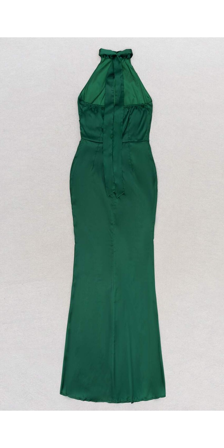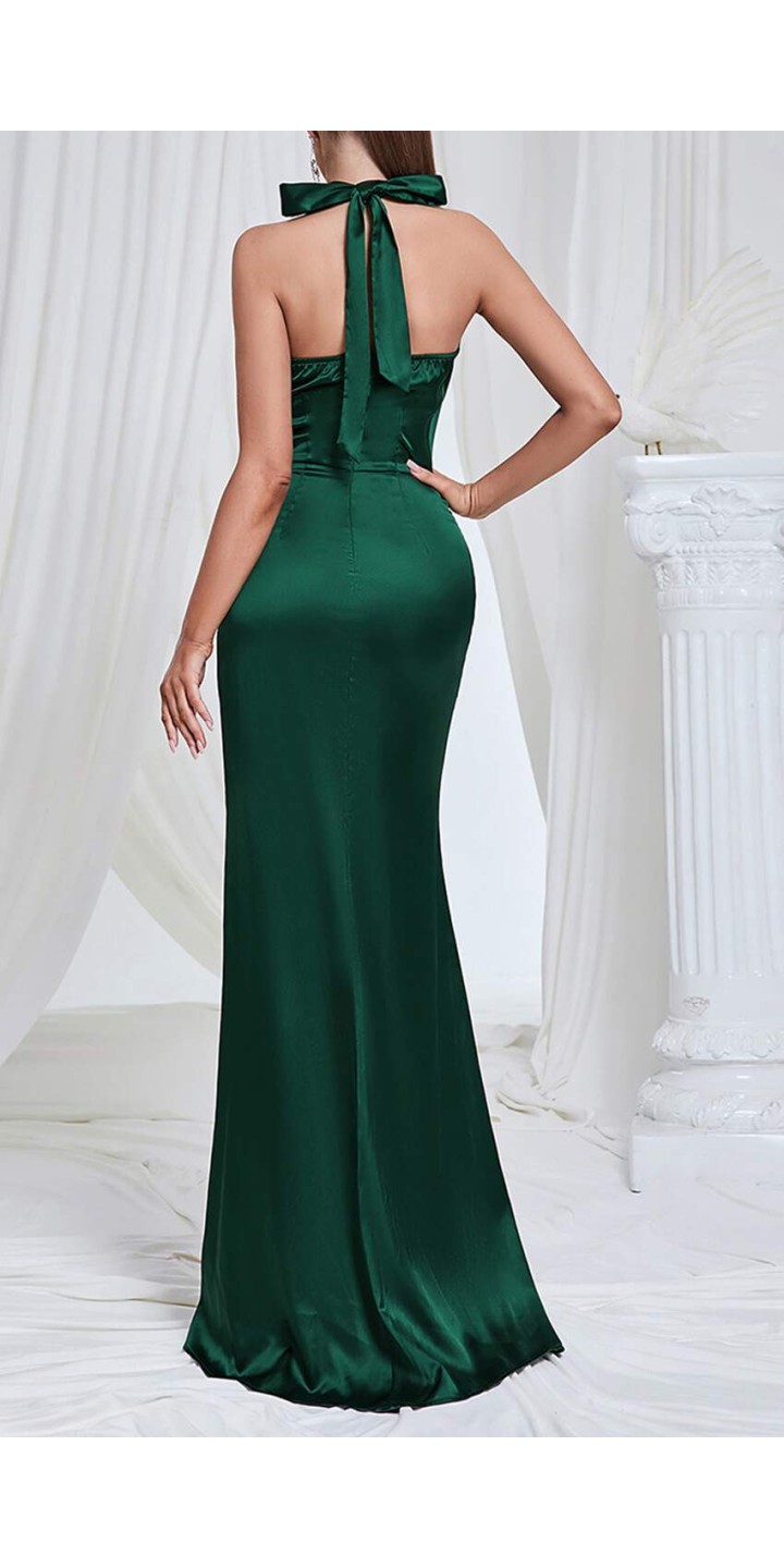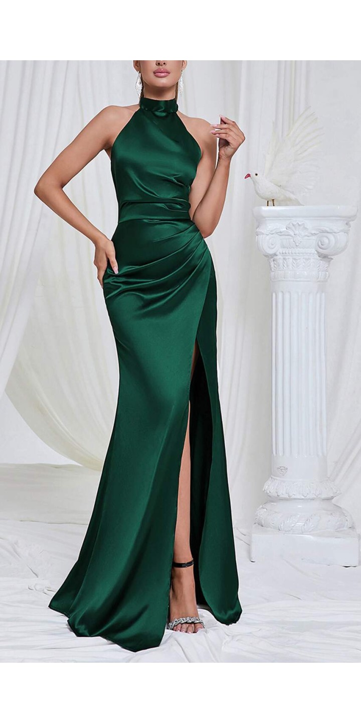 Dark Green Halter Sheath Ruched Long Bridesmaid Dresses KSP674