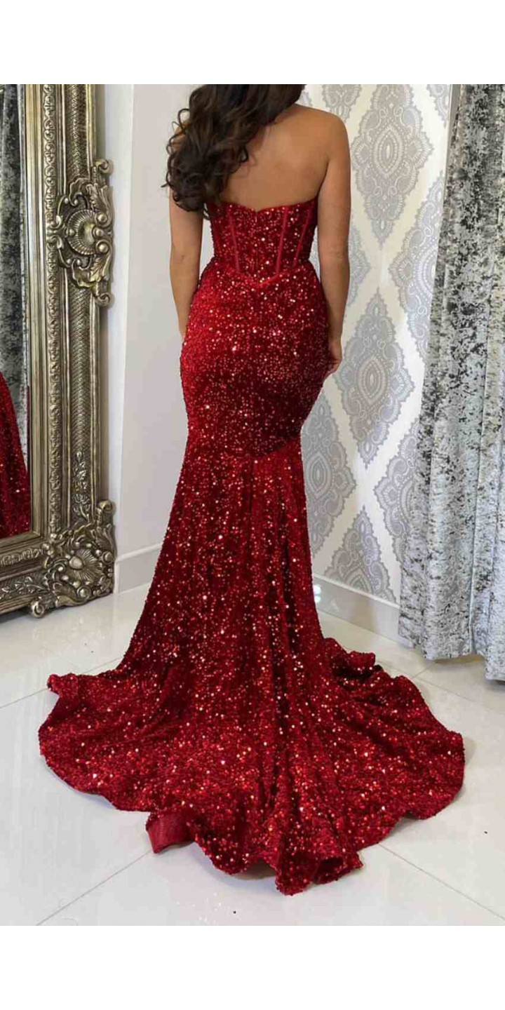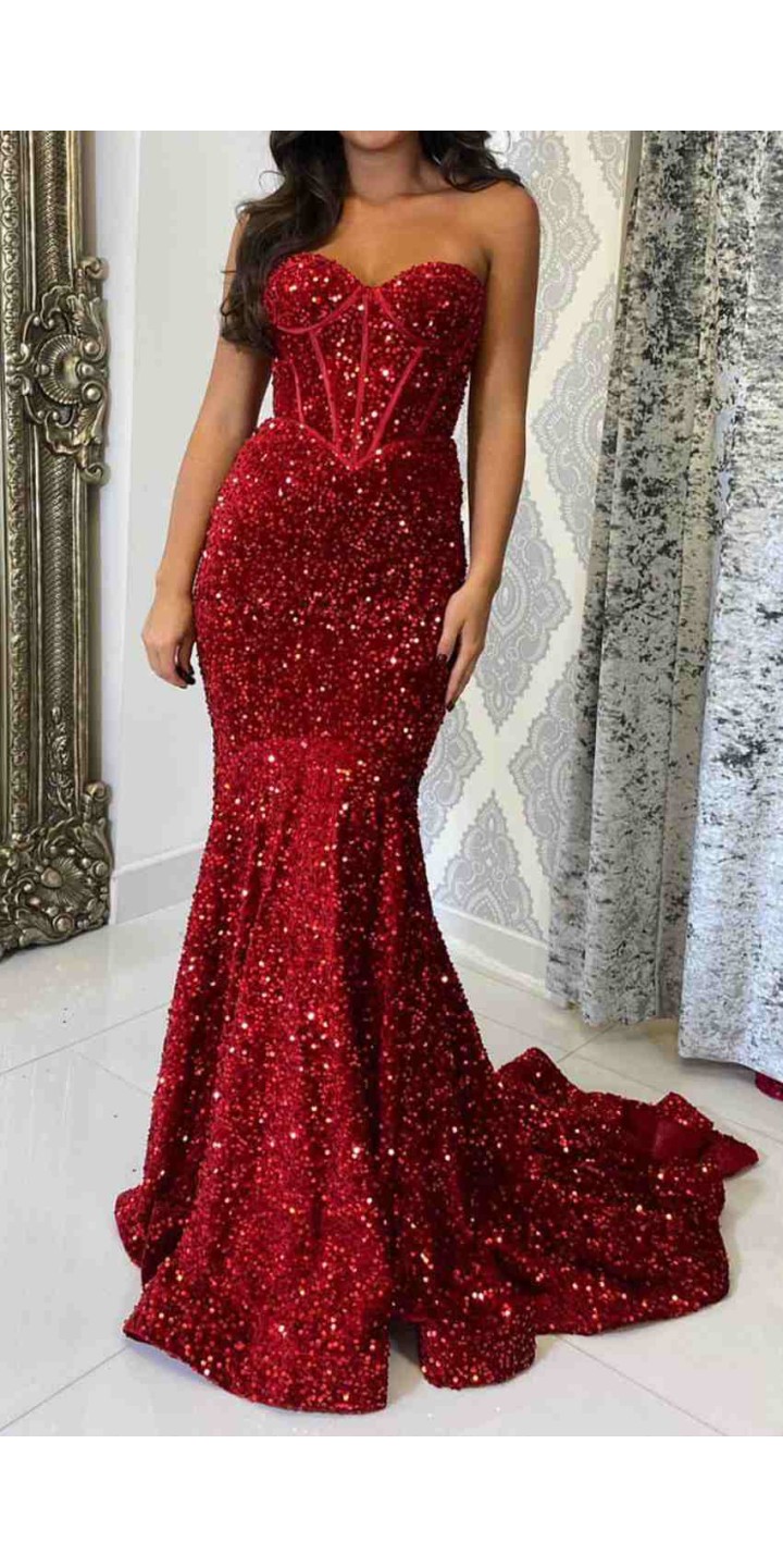 Sequined Red Bustier Mermaid Prom Dress UK Sweetheart KSP689