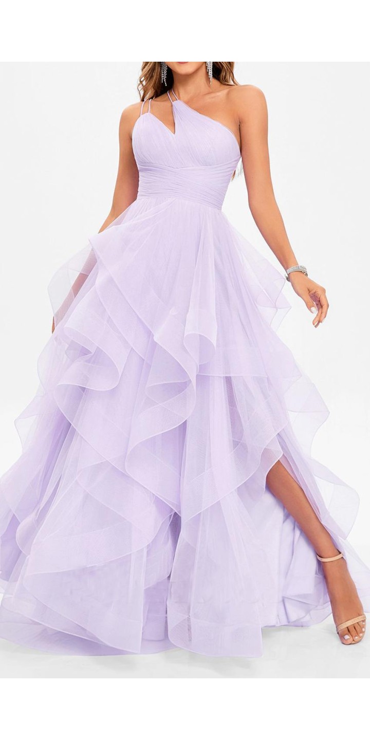 The reasons to buy this lilac one shoulde prom gown: