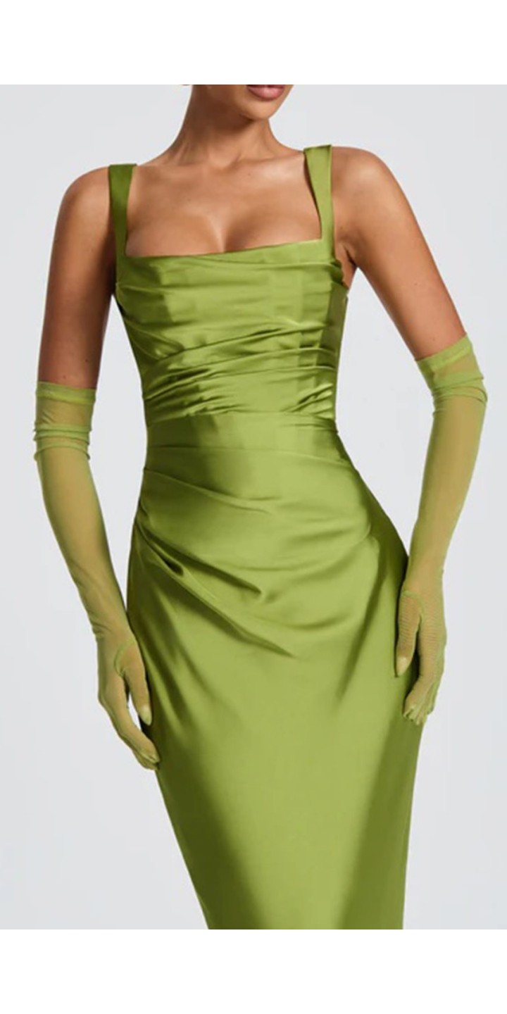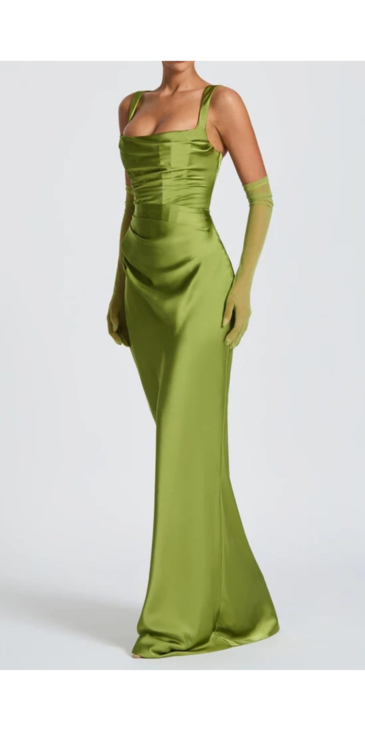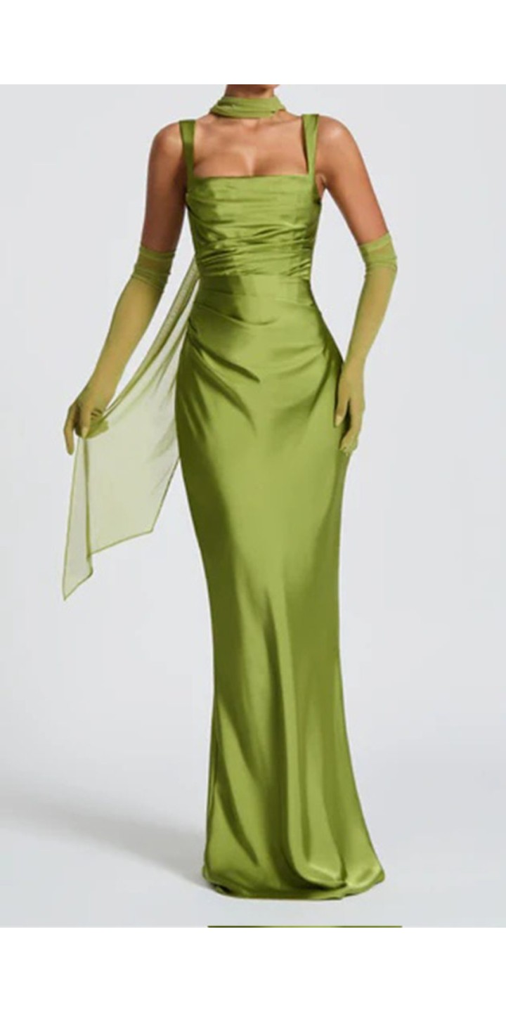 Make a stunning entrance at your next formal event in this elegant green satin maxi dress. The luxurious satin fabric drapes gracefully to create a floor-length silhouette that exudes timeless elegance.