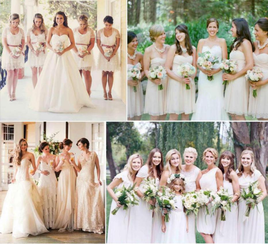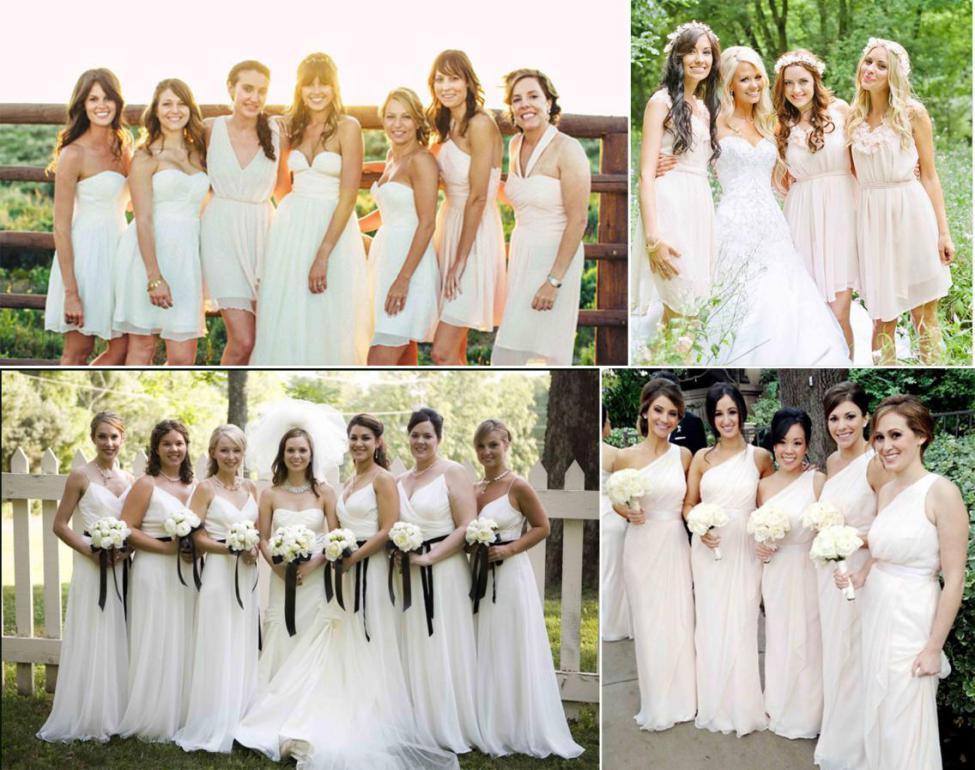 1. White and Ivory Bridesmaid Dresses