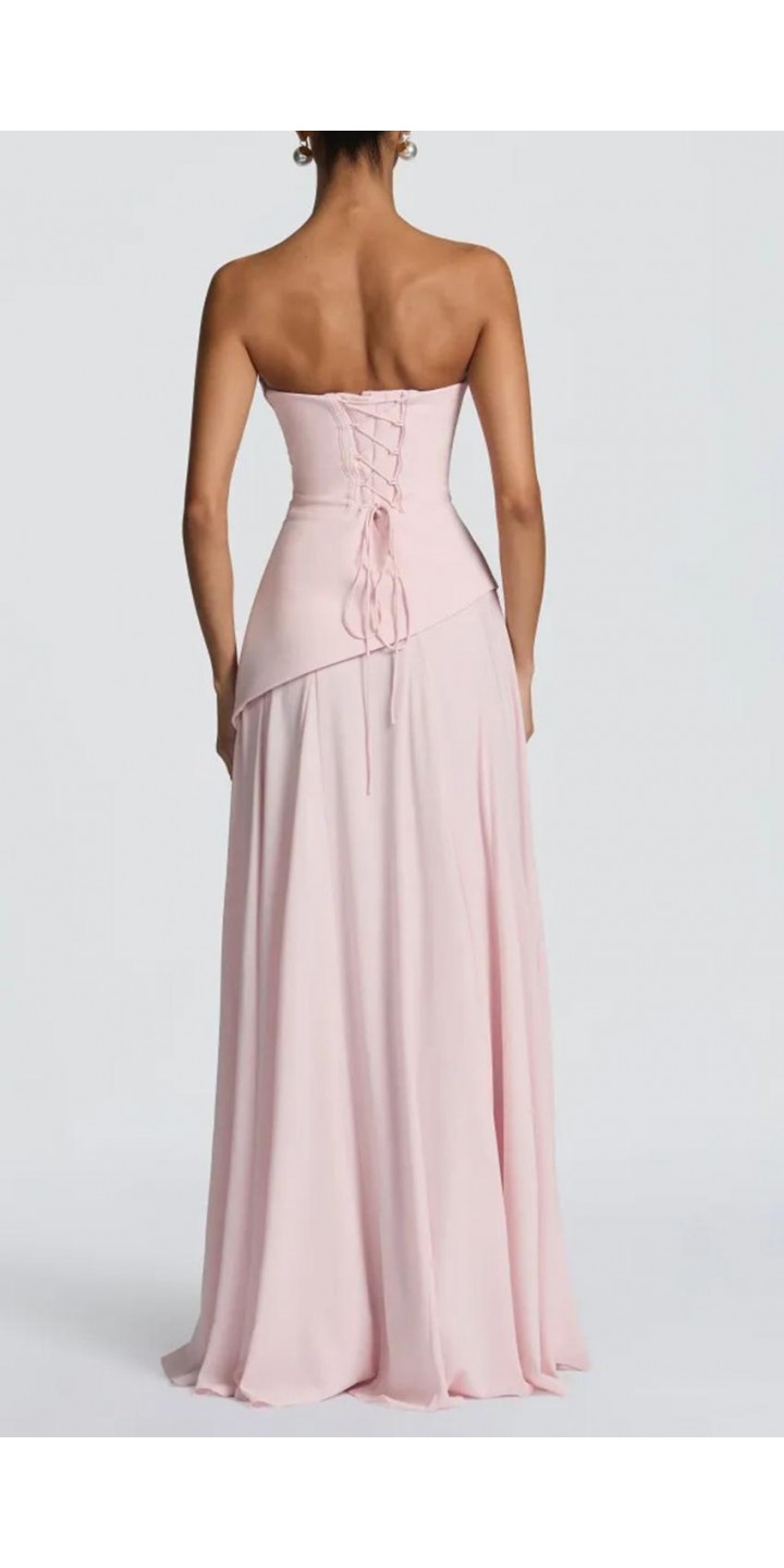 Strapless Long Blush Pink Drop Waist Prom Dress Corset UK KSP679