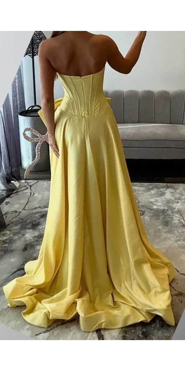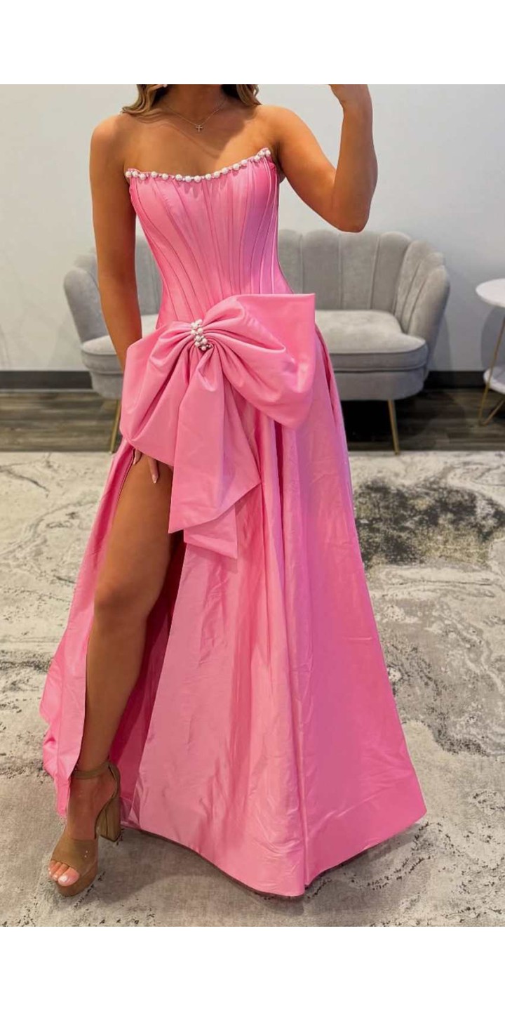 Pink Embellished Strapless Corset Prom Dress with Bow Details KSP695
