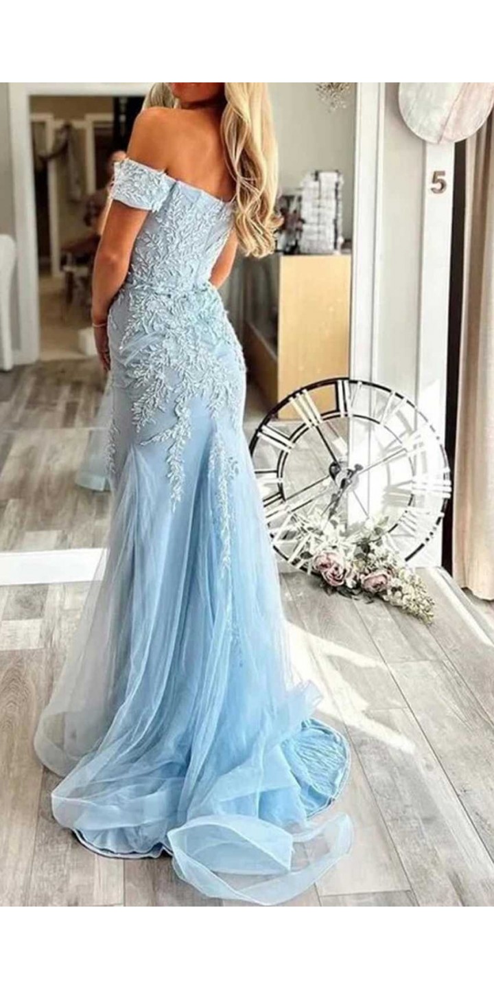 The light blue shade offers a fresh take on formal wear, making it an ideal choice for those seeking something both classic and unique. The dress's silhouette is designed to flatter and enhance, creating a memorable look for any special event.