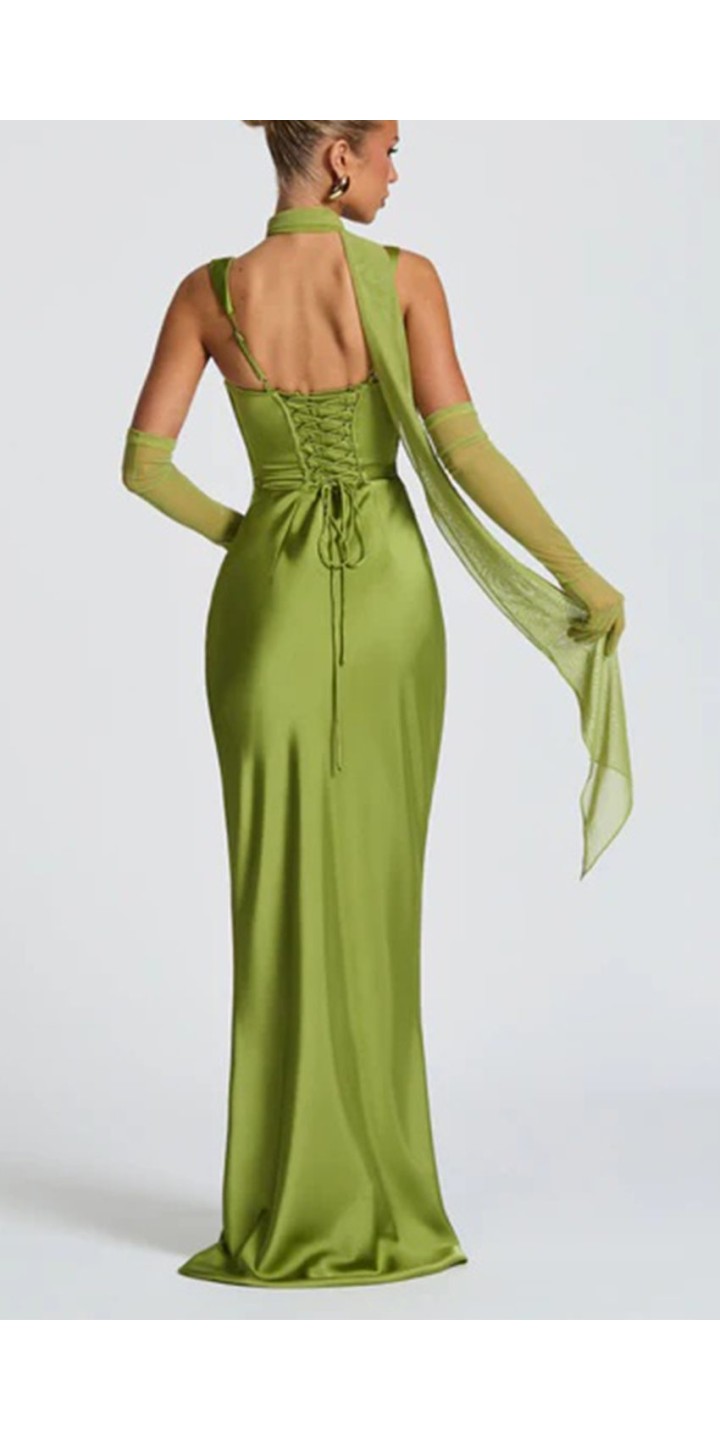 Make a stunning entrance at your next formal event in this elegant green satin maxi dress. The luxurious satin fabric drapes gracefully to create a floor-length silhouette that exudes timeless elegance.
